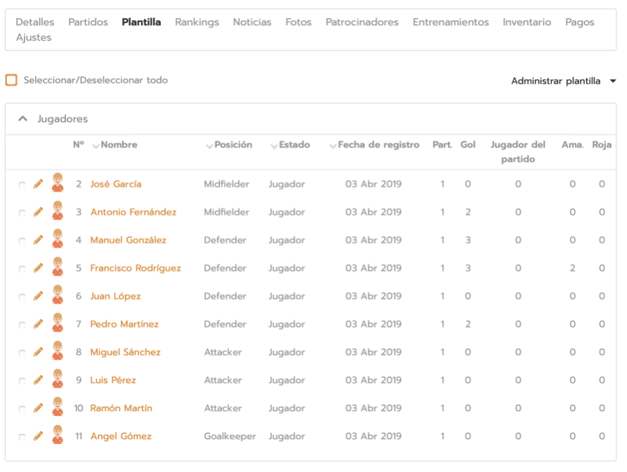 Haz que tus jugadores se sientan como profesionales. Vincula las estadísticas de competiciones a tus jugadores para que puedan llevar la cuenta de sus goles, asistencias, sanciones y mucho más.