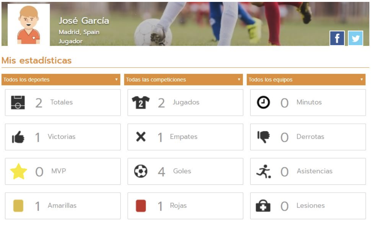 Una vez confirmada la petición, los usuarios verán las estadísticas del jugador solicitado en su perfil, sin poder editar el perfil de este jugador en tu competición.